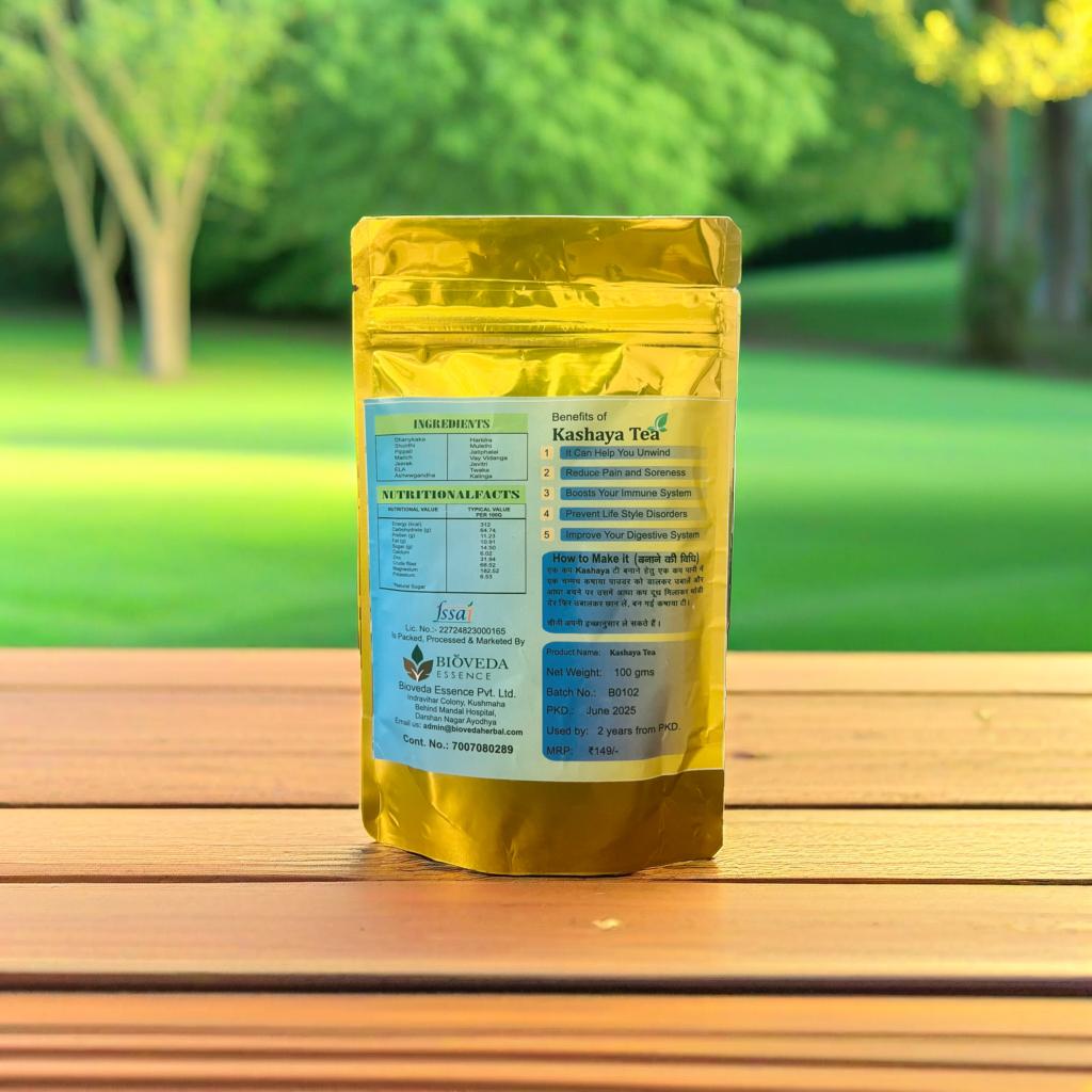 Kashaya Tea, a traditional Ayurvedic Herbal Tea Powder, is enriched with time-tested herbs and spices that bring balance to your daily routine.